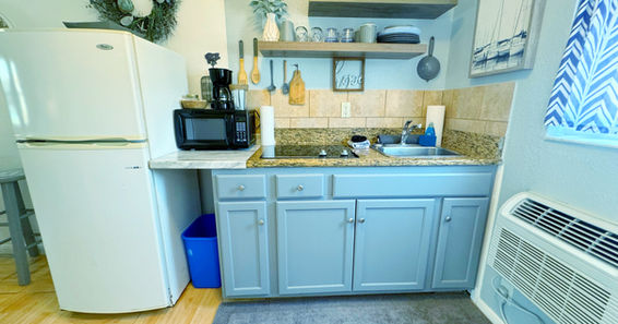 -Microwave, stove only, dishes, silverware, cups, mugs, pots & pans.
